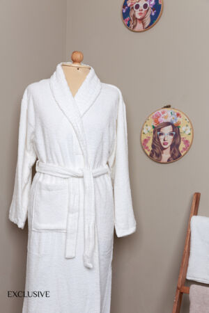 Coffret Cap de Bain Elle et Lui Blanc et Beige : Ensemble de 6 Pièces 2 Peignoirs + 2 Draps + 2 Serviettes