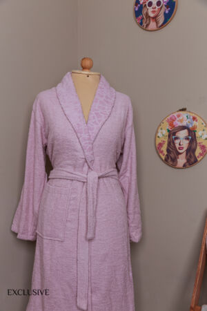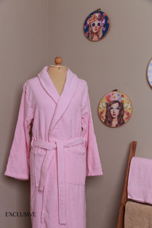 Coffret Cap de Bain Pour Femme En Rose et Blanc : Ensemble de 3 Pièces Peignoir + Drap + Serviette