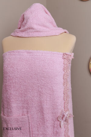 Serviette de Bain Rose Pour Femme avec Turban Bonnet – Fermeture Scratch