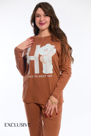 Pyjama Femme Daisy Coton Camel avec veste en beige