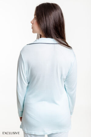 Ensemble Pyjama Aline: Chemise et Pantalon Coton Bleu Ciel