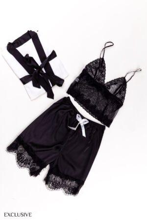 Tessa Ensemble Lingerie Féminine: Déshabillé, Débardeur Dentelle & Short Satiné