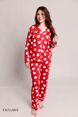Ensemble Colette Amour Rouge : Chemise et Pantalon Coton à Motif Cœurs avec chaussettes
