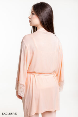 Ensemble Jasmine Pyjama 3 Pièces Dentelle Coton Lycra – Saumon