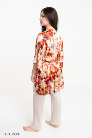 Ensemble Jasmine Rouge : Pyjama 3 Pièces avec Kimono en Satin Imprimé Floral pour femmes