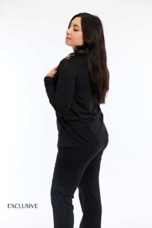 Pyjama Chemise Femme Colette Coton Noir Avec Dentelle