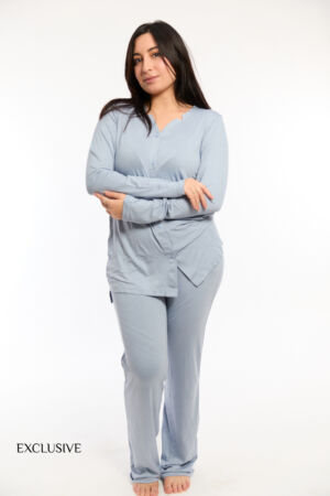 Pyjama Femme Colette Violet Clair : Chemise et Pantalon Coton & Confort