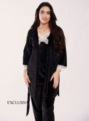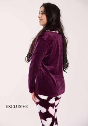 Set Pyjama Velour Olivia : Trois pièces en velours Rose – Noir – Mauve Lilas