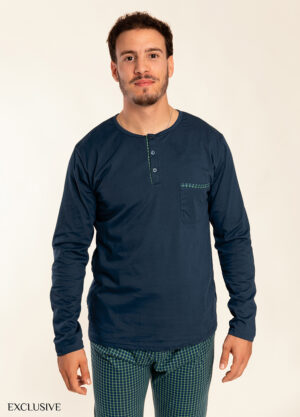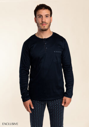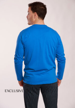 Pyjama Simon II Homme Bleu en Coton : Pull Col Rond et Pantalon Élastique