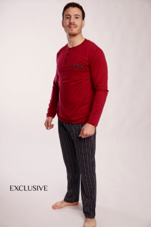 Pyjama Simon II Homme Bordeaux en Coton : Pull Col Rond et Pantalon Élastique